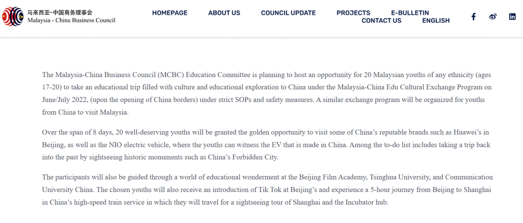 Yes, Malaysia and China have engaged in several cultural exchange programs. One notable example is the Malaysia-China Edu Cultural Exchange Program organized by the Malaysia-China Business Council (MCBC). This program allows Malaysian youths to visit China for educational and cultural exploration. Participants can experience China’s culture, visit historic sites like the Forbidden City, and explore educational institutions such as Tsinghua University and Beijing Film Academy.